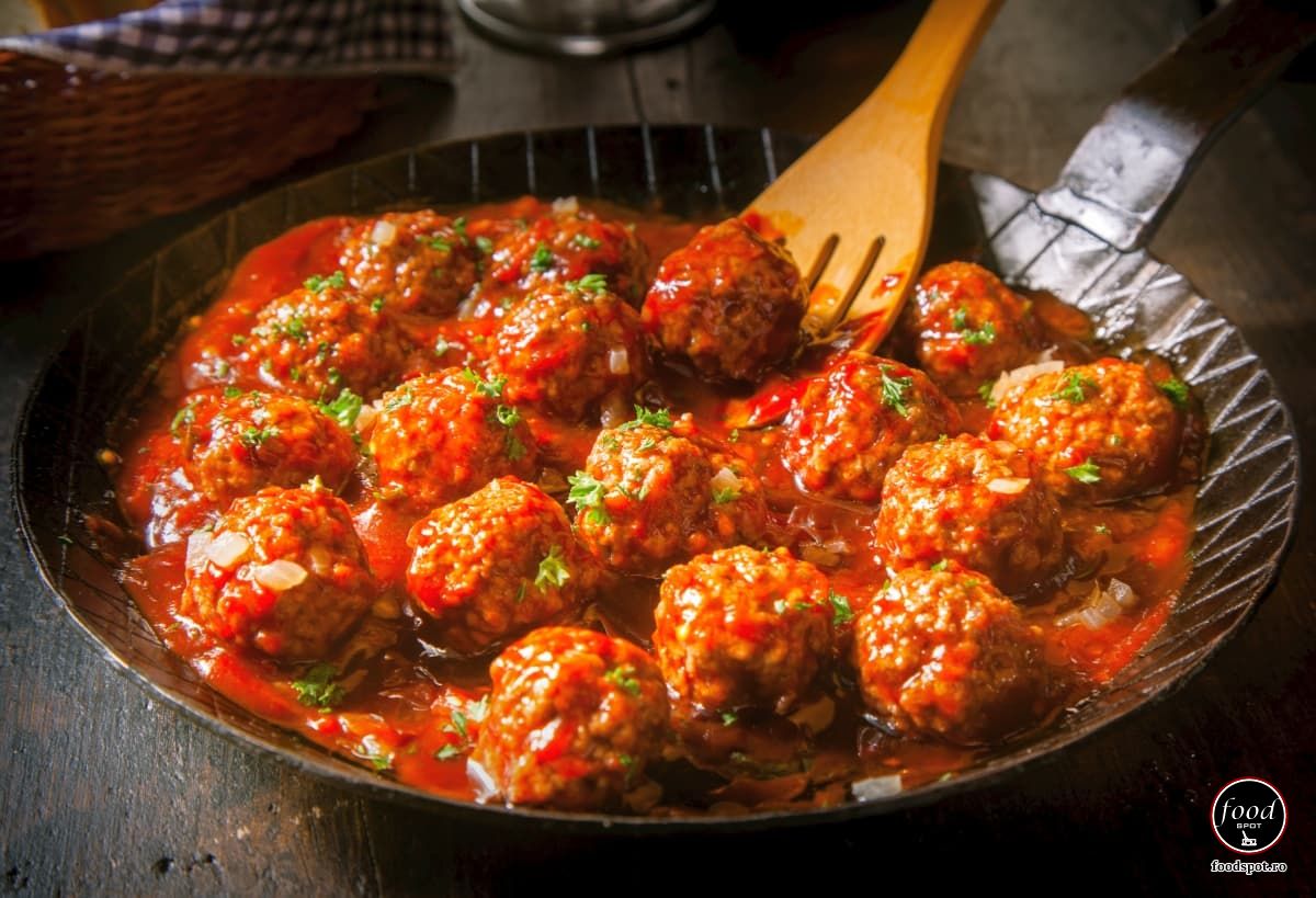 - Lăsați totul să fiarbă la foc mic timp de încă 10-15 minute, astfel încât chifteluțele să se pătrundă cu aromele sosului.