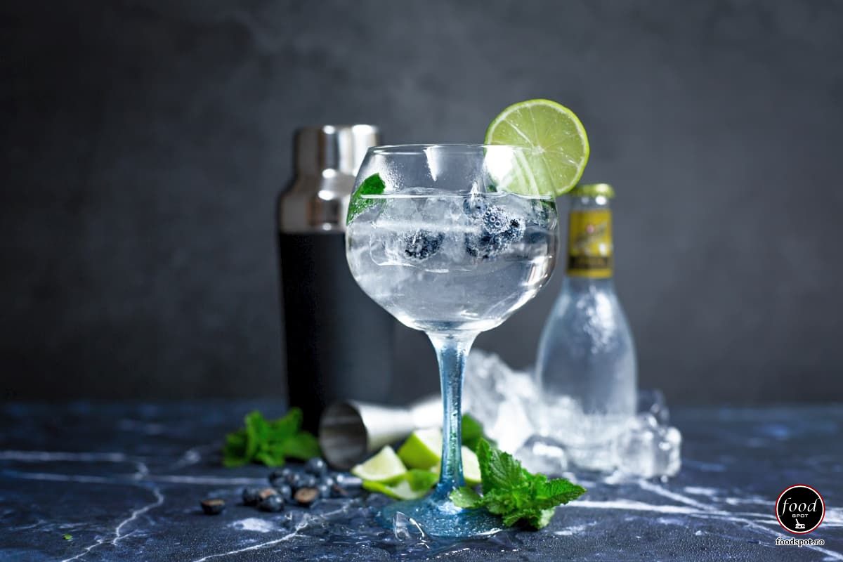 - Agită bine și strecoară într-un pahar cu apă tonică și cuburi de gheață, ornează cu o felie de lime.